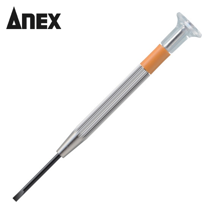 アネックス 精密ドライバー|特長:滑りにくいローレット加工ハンドルです。 回しやすい回転キャップ付です。 色でサイズが分かる、カラーバンド付です。