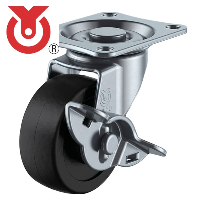 ユーエイキャスター プレート式 自在 キャスター ゴム 車輪径50mm ストッパー付き Lタイプ LG-S型 取付寸法46×35 (1個) 品番:LG-50RS