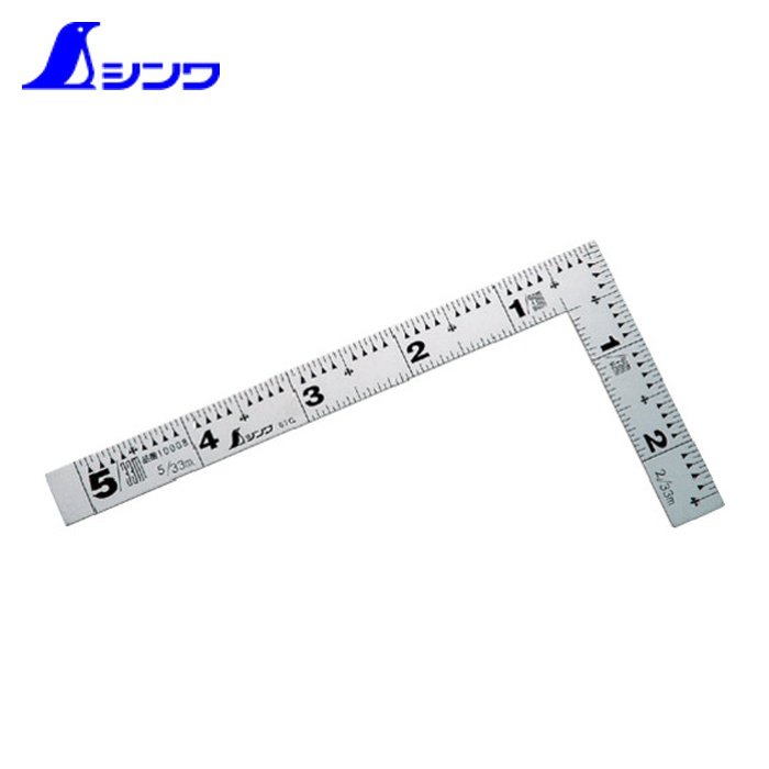 シンワ 曲尺|特長:角が薄く平たいので細かい材料にもピタリと張り付き、ケガキやすく測りやすくなっています。 外側基点の内側目盛が付いています。