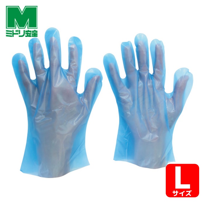 ミドリ安全 作業手袋 ポリエチレン使い捨て手袋 外エンボス 青 L (200枚入) (1箱) 品番:VERTE-581-L