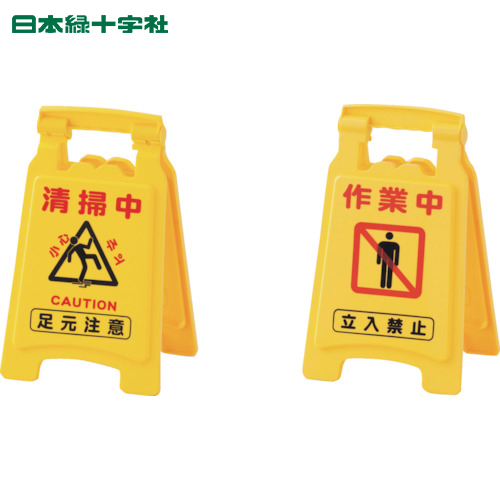 日本緑十字 フロアサインスタンド 清掃中足元注意/作業中立入禁止 フロアサイン-6015 420×250mm 両面表示 PP (1台) 品番:337501