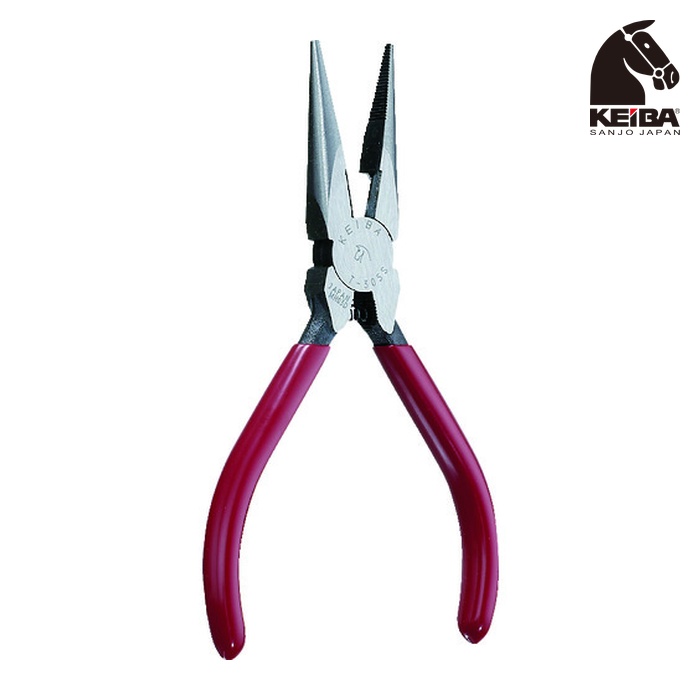 KEIBA ラジオペンチ|特長:先端の靱性に細心の注意を払った熱処理を施しています。 セレーションのついたアゴ部は、ビニール被覆むきや圧着に使用できます。 神戸製鋼所製オリジナル高級鋼材「マルトロイ[[R2]]」を使用しています。
