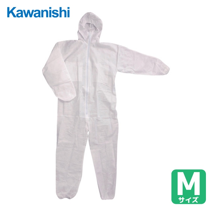 川西工業 使い捨て保護服 不織布つなぎ服 揆水透湿タイプ Mサイズ (1着) 品番:7016-M