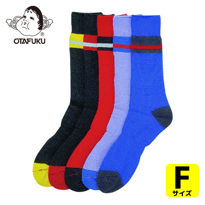おたふく 作業着 靴下 パイルソックス カラフルライン 先丸 (2P) アソート (1組) 品番:BS-317