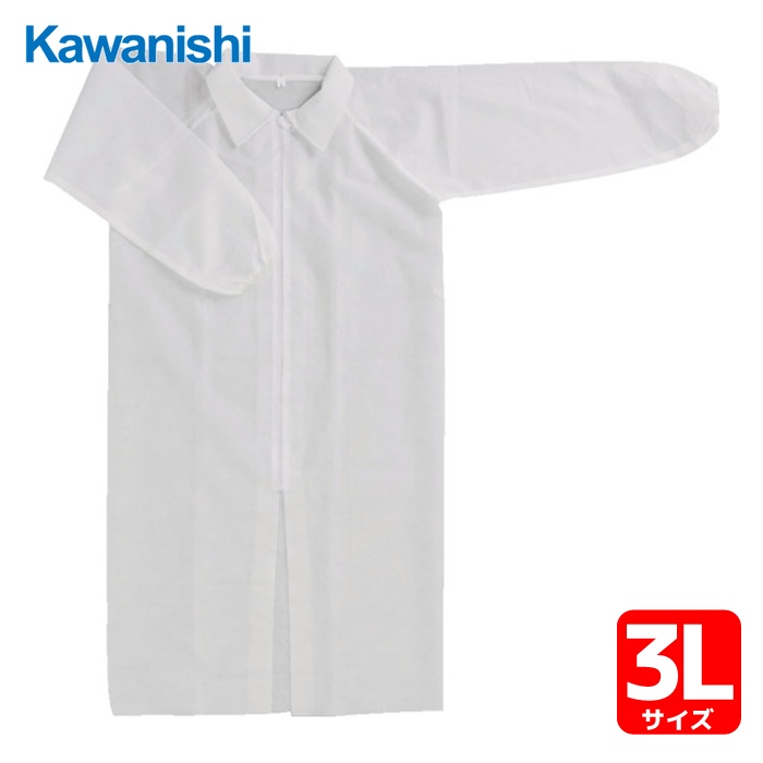 川西工業 使い捨て保護服 工場見学用不織布3点セット(白衣 マスク ヘアキャップ) 3Lサイズ (1S) 品番:7022-3L