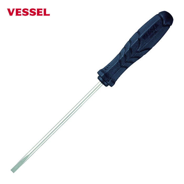 VESSEL グリップドライバー|特長:細軸タイプのプラスチック柄ドライバーです。 軸部は無電解ニッケルメッキで錆びにくく、刃先の精度も抜群です。 グリップは八角形グリップでトルクをしっかり伝達します。