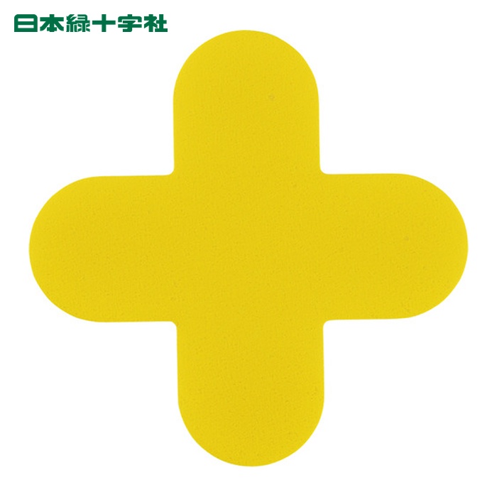 日本緑十字 路面表示ステッカー 十字型 黄 QCC-Y 150×150mm 10枚組 PVC (1組) 品番:403032