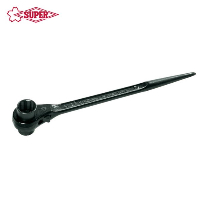スーパー 両口ラチェットレンチ|特長:正逆は切り替え爪式です。 カチオン電着塗装です。 爪式は切り替え爪の窓が開口により砂かみの時は洗浄が簡単です。