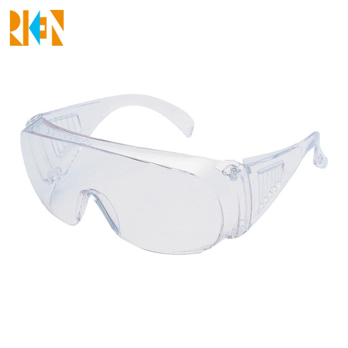 リケン 一眼型保護メガネ(オーバーグラスタイプ)|特長:広視野クリアフレームのオーバ・グラスタイプです。 矯正めがねの上に装着できます。 オールプラスチックで、金属部品を使用していません。