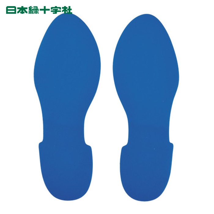 日本緑十字 路面表示ステッカー 足型/青 QCFT-BL 280×100mm 左右各1枚/計2枚組 (1組) 品番:403004