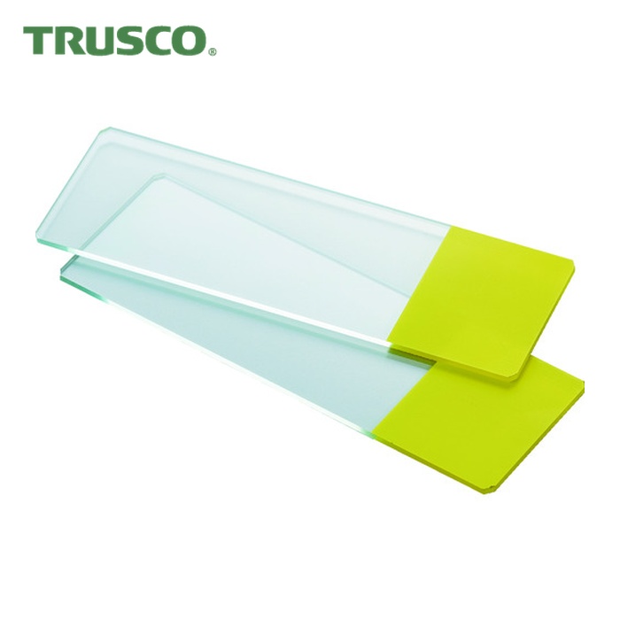 TRUSCO 顕微鏡用品|特長:洗浄済みホワイトガラスを使用しております。 四隅を45°に研磨しており安全です。 左端20mmにフロスト加工を施しており、油性ペンなどで書き込みができます。