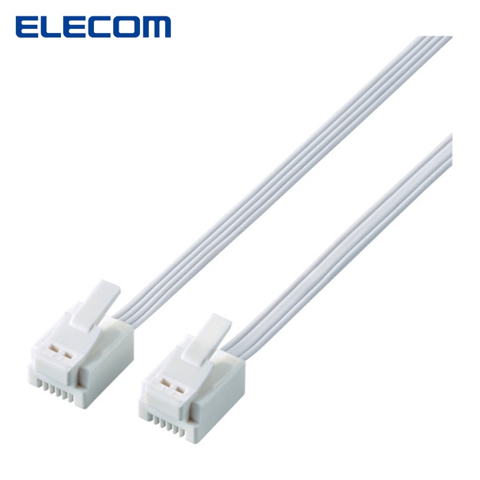 ELECOM 通信線|特長:モジュラーコンセントと家庭用電話機・ビジネスホン・FAX・モデムなどを接続できる6極4芯タイプのモジュラーケーブルです。