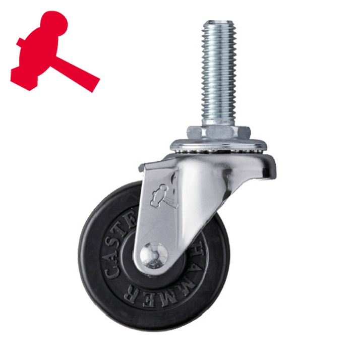 ハンマーキャスター ねじ込み旋回式ゴム車輪 50mm M12 (1個) 品番:420EA-R50
