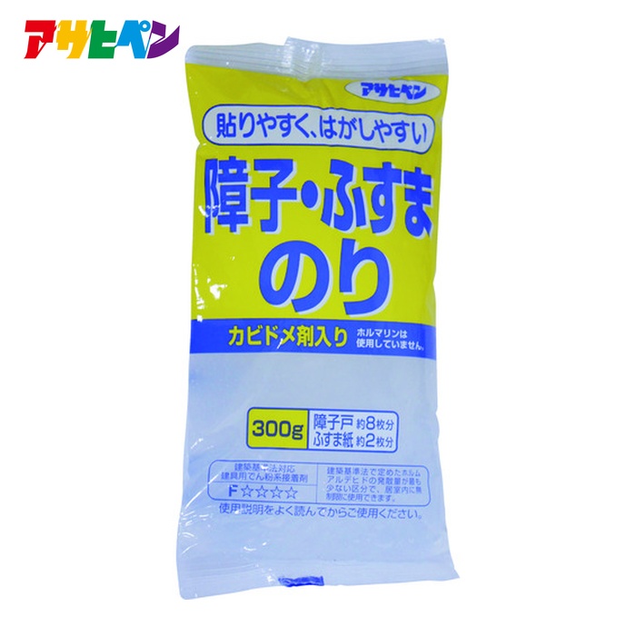アサヒペン 建築・内装用補修剤|特長:障子紙が貼りやすく、はがす時もきれいにはがせる専用のりです。 カビドメ剤入りですので、カビの発生を防ぎます。 ホルマリンは使用しておりません。