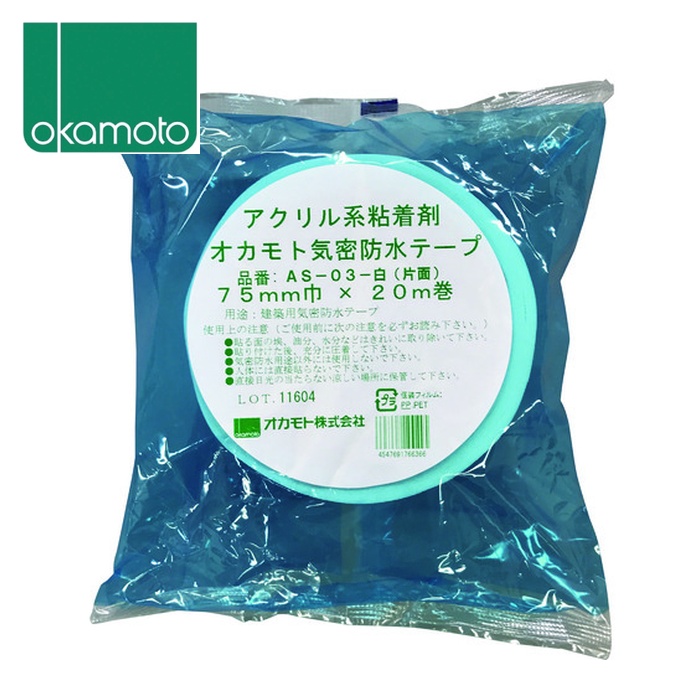 オカモト okamoto アクリル気密防水テープAS-03 白 片面タイプ 75mm (1巻) 品番:AS-03-75