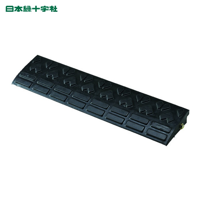 緑十字 段差プレート|特長:付属のボルトでしっかりと固定できる連結タイプの段差解消プレートです。 雨の日でもスリップしにくく音も静か、また、割れや変形が少なく、環境にも配慮された再生ゴム製です。