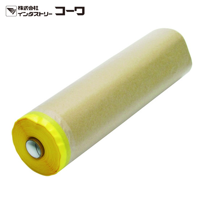 KOWA マスカー|特長:片面ラミネート加工のクラフト紙が塗料の浸透を防ぎます。 テープ/フィルム耐熱温度:80°C/20分。