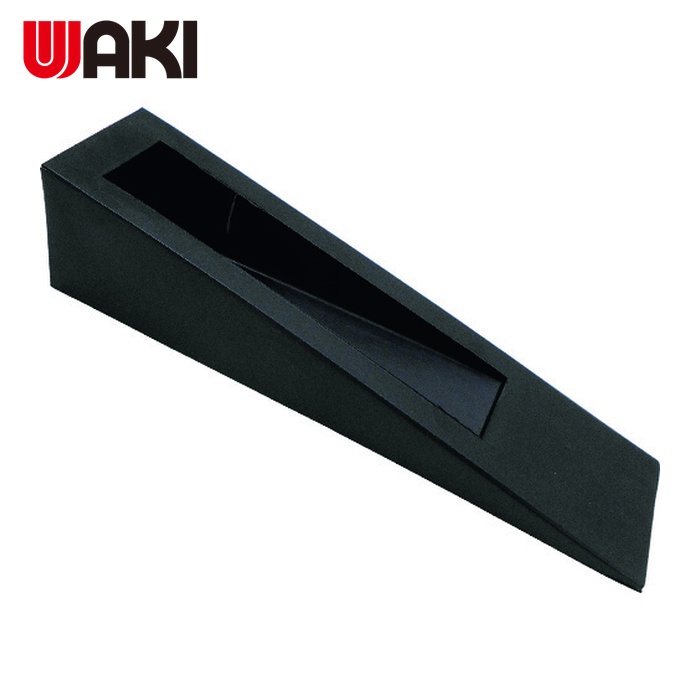 WAKI ドアストッパー|特長:国産のエラストマー樹脂製のドアストッパーです。 ドアと床の隙間に差し込んでください。 ストッパーの凹凸でドアを開いたまま押さえることができます。