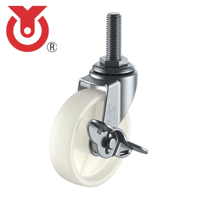 ユーエイキャスター ねじ込み式 自在 キャスター ナイロン 車輪径40mm ストッパー付き Lタイプ LT-S型 ネジ寸法M12×14ピッチ1.25 (1個) 品番:LT-40NS-M12-14