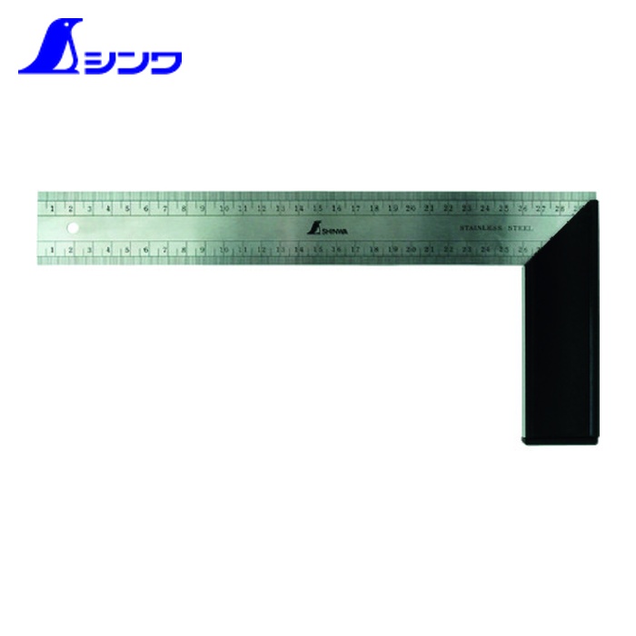 シンワ スコヤ|特長:竿に目盛が入っているので、寸法も測れます。 台のベースが大きいので、直角が確認しやすくなっています。