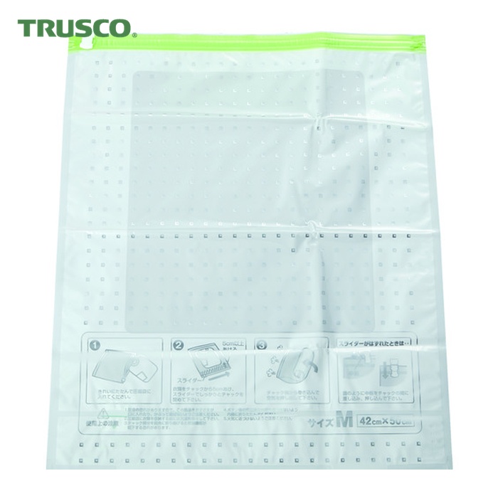 TRUSCO 圧縮袋|特長:圧縮梱包により省スペースでの保管が可能です。 スライドジッパーで簡単に圧縮でき、ウレタンや綿など場所を取る商品の梱包に便利です。