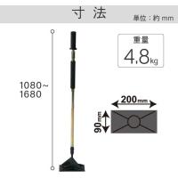 | 仕様・規格 | ● 全長(mm):1080〜1680 ● 頭部(mm):90×200 ● 頭部形状:角 ● ハンドルスライド型加圧式 ● 頭部板厚:11mm |