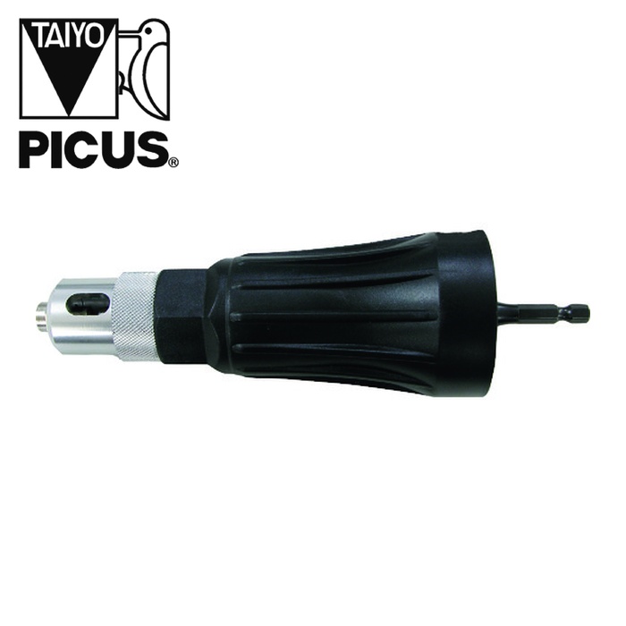 タイヨー アタッチメントリベッター|特長:インパクトドライバーや電動ドライバーに取り付けるだけでリベッティングを楽に行えます。 ノーズピースの交換のみで、アルミ、スチールのリベット径6。 4mmまで使用可能です。