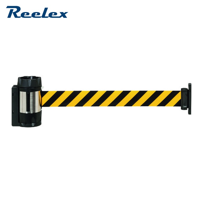 Reelex ガードテープ|特長:最長10mシートで広い間口の区画が可能です。 マグネットで鉄面に簡単に取り付けできます。 シンプルで強度を高めた堅牢ボディです。