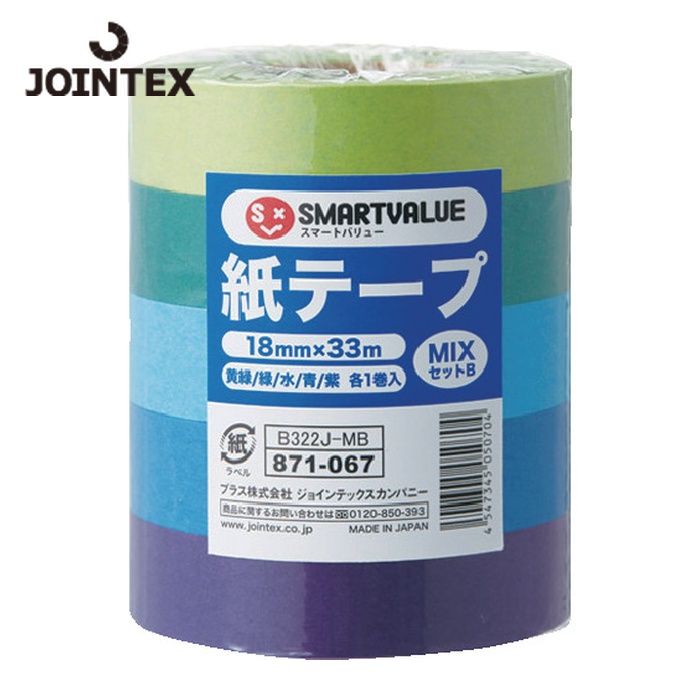 プラス JTX 871067)紙テープ<色混み>5色セットB B322J-MB (1Pk) 品番:B322J-MB