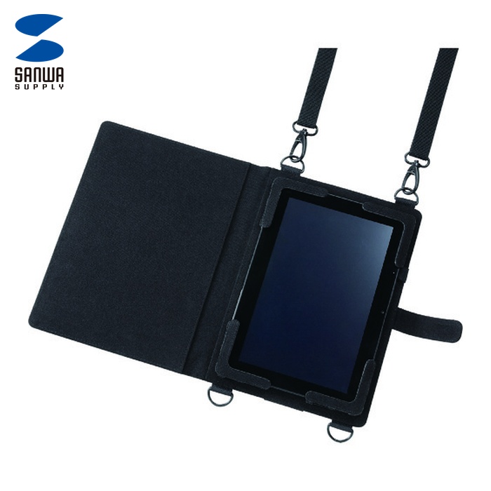 SANWA タブレットケース|特長:ショルダーベルト・ハンドベルト・ペンフォルダー付10。 1型タブレットPCケースです。 四隅の伸縮ゴムで固定し、10。