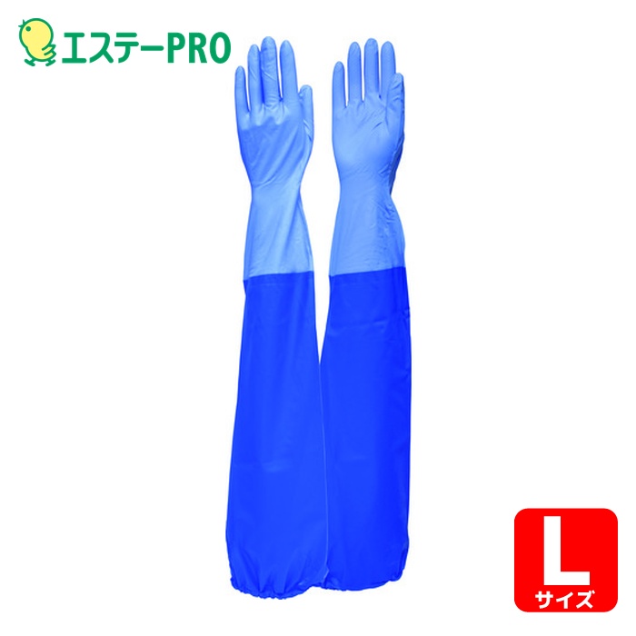エステー 作業手袋 No.390 ニトリル中厚手 腕カバー付 L ブルー (1双) 品番:ST76087