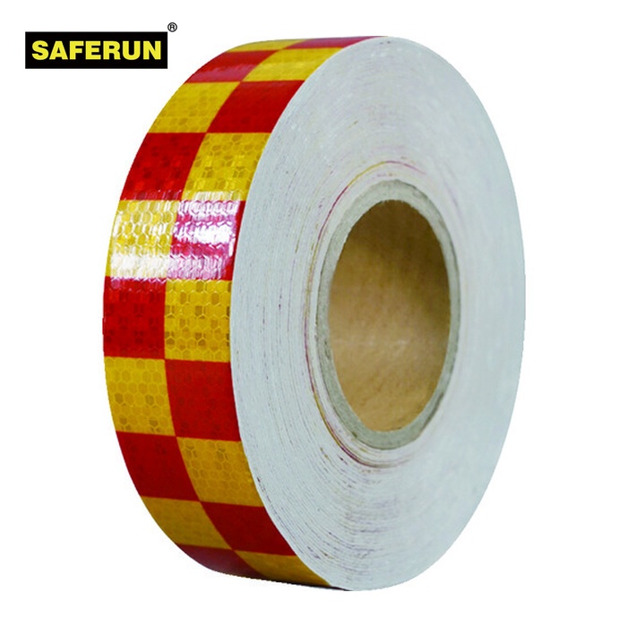 セーフラン 高輝度反射テープ 赤黄格子 幅50mm×50m (1巻) 品番:14368
