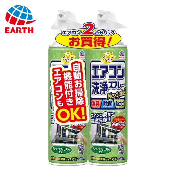 アース らくハピ エアコン洗浄スプレー Nextplus フレッシュフォレストの香り 2本パック (1Pk) 品番:688910