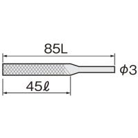 | 仕様・規格 | ● 形状:平 ● タイプ:細目 ● 全長(mm):85 ● 刃長(mm):45 ● 刃幅(mm):5.5 ● 刃厚(mm):1.5 ● 柄部φ(mm):3 ● 軸径(mm):3 |