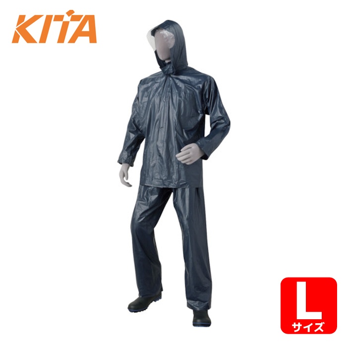 喜多 雨具 合羽 カッパ レインスーツ PVCレインコート No2000 ネイビー L (1着) 品番:NO2000-NV-L