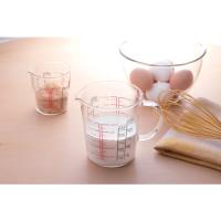 HARIO 計量カップ|特長:粉ものは黒、液体は赤の計量メモリのメジャーカップです。 肉厚のガラスで安心です。 中から見えるメモリで使いやすく、計量するものによって見やすい色でプリントしています。