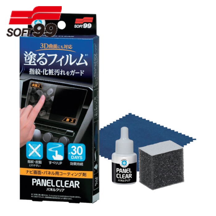 SOFT99 車内用クリーナー|特長:車内のタッチパネル等を2種類のフッ素化合物の効果で汚れがつきにくく、取れやすい防汚性と指すべり性を発揮します。 使い方は、サッと塗って乾かすだけのカンタン作業で、塗るタイプなので3D曲面にも施工可能です。