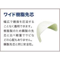 - 軽量で親指を圧迫することなく着用できるワイド樹脂先芯です。