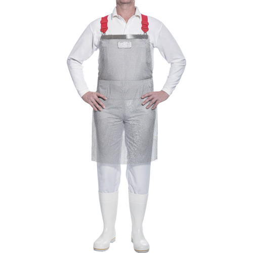 ● ハンドナイフ用の保護のため、機械式の刃、鋸など強力な力がかかる刃物に対して耐性はありません。 ● 刃先から20mmの刃幅が12.5mm以下の極端に尖ったナイフや鋭利なものはクサリのリングを貫通する恐れがあるため使用しないでください。 ● 作業前は必ず、クサリの欠損がないかなどエプロンの状態が良好であることを確認してからご利用ください。 ● ユーロフレックス製クサリエプロンは耐突刺、耐切創に特化した製品ですが、完全に安全保障するものでありません。 ● 耐突刺、耐切創に特化した製品ですが、完全に安全保障するものでありません。 |