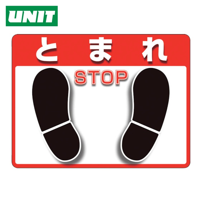 ユニット 路面標識|特長:床面に貼るだけで簡単に注意喚起ができます。 凹凸のあるクロス面、粗面等でも下地に食い込み、剥がれにくいオレフィン系の新材質「ユニピタ」を使用しています。