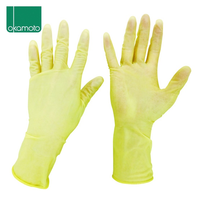okamoto クリーンルーム用使い捨て手袋(天然ゴム)|特長:超純水洗浄で重金属の溶出が少なくシリコーンフリーの高品位な手袋です。 特殊滑り止め加工でグリップ力を高めました。