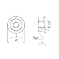 - ワッシャー(フランジ)と六角ナットが一体化しているため、緩み止め効果が期待できます。