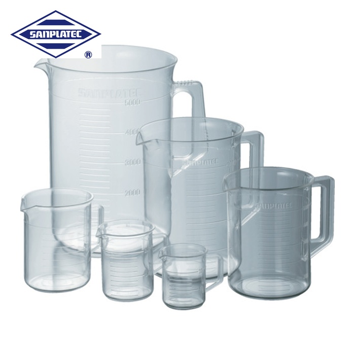 サンプラ ビーカー|特長:耐薬品性、耐熱性、透明度に非常に優れたTPX[[R上]]樹脂製です。 底面が平らなため、かくはん子でのかくはんが可能です。 オートクレーブ(121°C)も可能です。