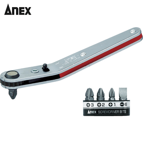 アネックス ベントアップヘッド型オフセットラチェットドライバー ビット5本組 (1S) 品番:428 オフセット式ラチェットドライバー