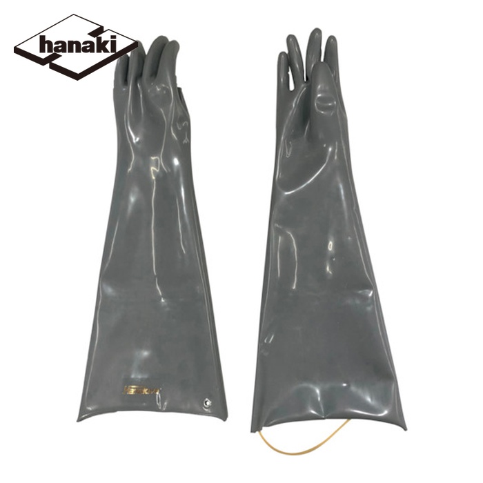ハナキゴム 耐薬品・耐溶剤手袋(ポリウレタン)|特長:有機溶剤作業に欠かせない高濃度ポリウレタン製手袋です。 ハトメ付の長い手袋です。 有機溶剤、ガソリン、灯油、マシン油、動植物油まで使用できる高度のポリウレタン製、耐溶剤手袋です。