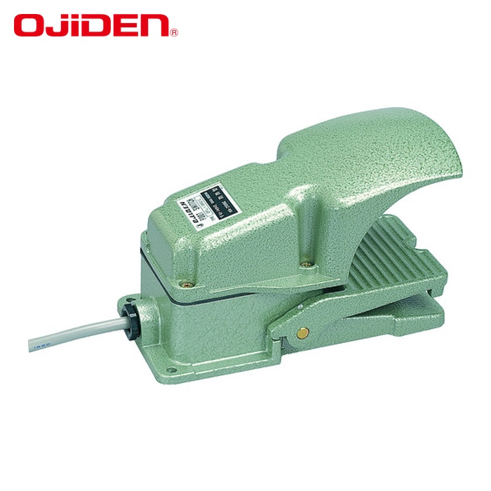 オジデン フットスイッチ|特長:保護カバー付にて、落下による誤動作を防ぎます。 水、油、悪環境での作業に最適なフットスイッチです。