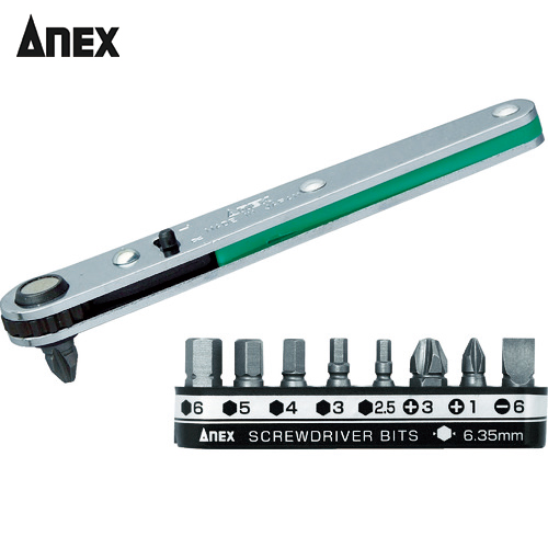 アネックス ストレート型オフセットラチェットドライバービット9本組 (1S) 品番:425-9B オフセット式ラチェットドライバーセット