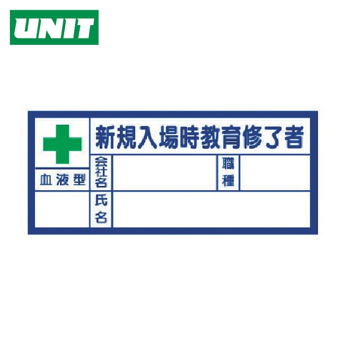 ユニット ヘルメット用ステッカー 新規入場時教育修了者・血液型 PPステッカー 30×70 10枚組 (1組) 品番:371-31