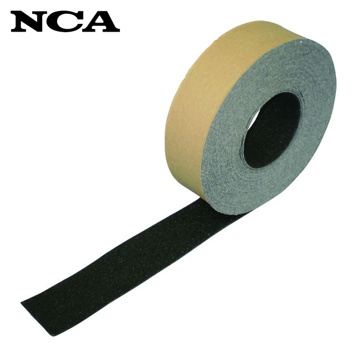 NCA すべり止めテープ(屋外用)|特長:簡単な施工で確実に足もとの滑りを止め安全度を高くします。 水や油がかかっても滑り止め効果が変らず凹凸面にもよくなじみ、優れた接着力で貼り付け直後から使用可能です。 (UV対策品)・カーボンニュートラルガス使用により、従来比61%排出量を削減しました(製造時)。