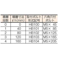 | 仕様・規格 | ● ねじ径×長さ(mm):M5×45 ● 積層寸法(mm):0 ● パック入数(本):4 ● 取付ボルトの締付トルク:6〜8N・m |